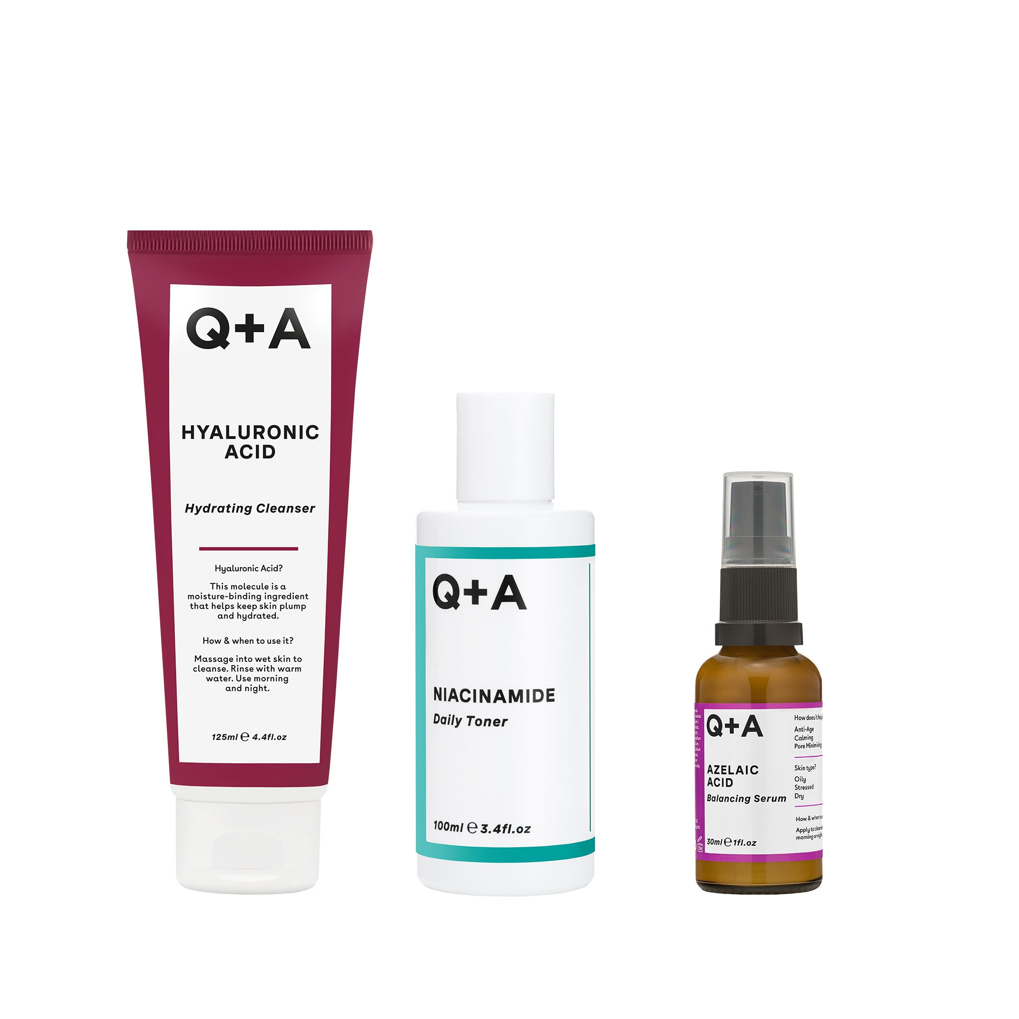 Το Q+A Balancing Skincare Bundle βοηθά στην εξισορρόπηση λιπαρότητας, στη βελτίωση υφής και στη δημιουργία πιο καθαρής και ομοιόμορφης επιδερμίδας.
