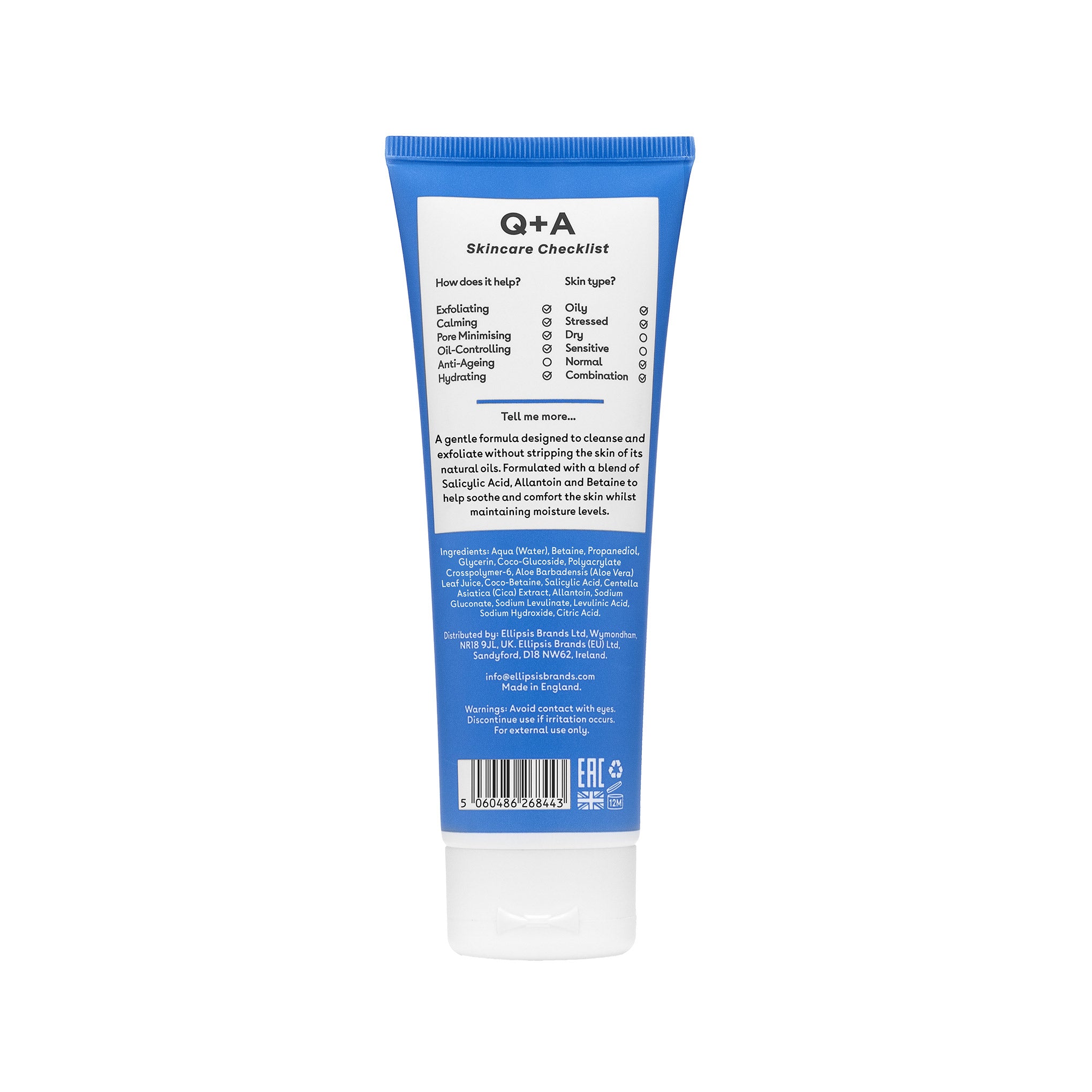 Ιδανικό για καθημερινή χρήση αυτό το απαλό καθαριστικό προσώπου με Σαλικυλικό Οξύ της Q+A απολεπίζει την επιδερμίδα αφαιρώντας τους ρύπους και τις ακαθαρσίες αφήνοντας ως αποτέλεσμα το δέρμα καθαρό και υγιές, ενώ παράλληλα διατηρεί τα φυσιολογικά επίπεδα λιπαρότητας της καθώς δρα στοχευμένα χωρίς να επηρεάζει τα φυσικά έλαια της επιδερμίδας.