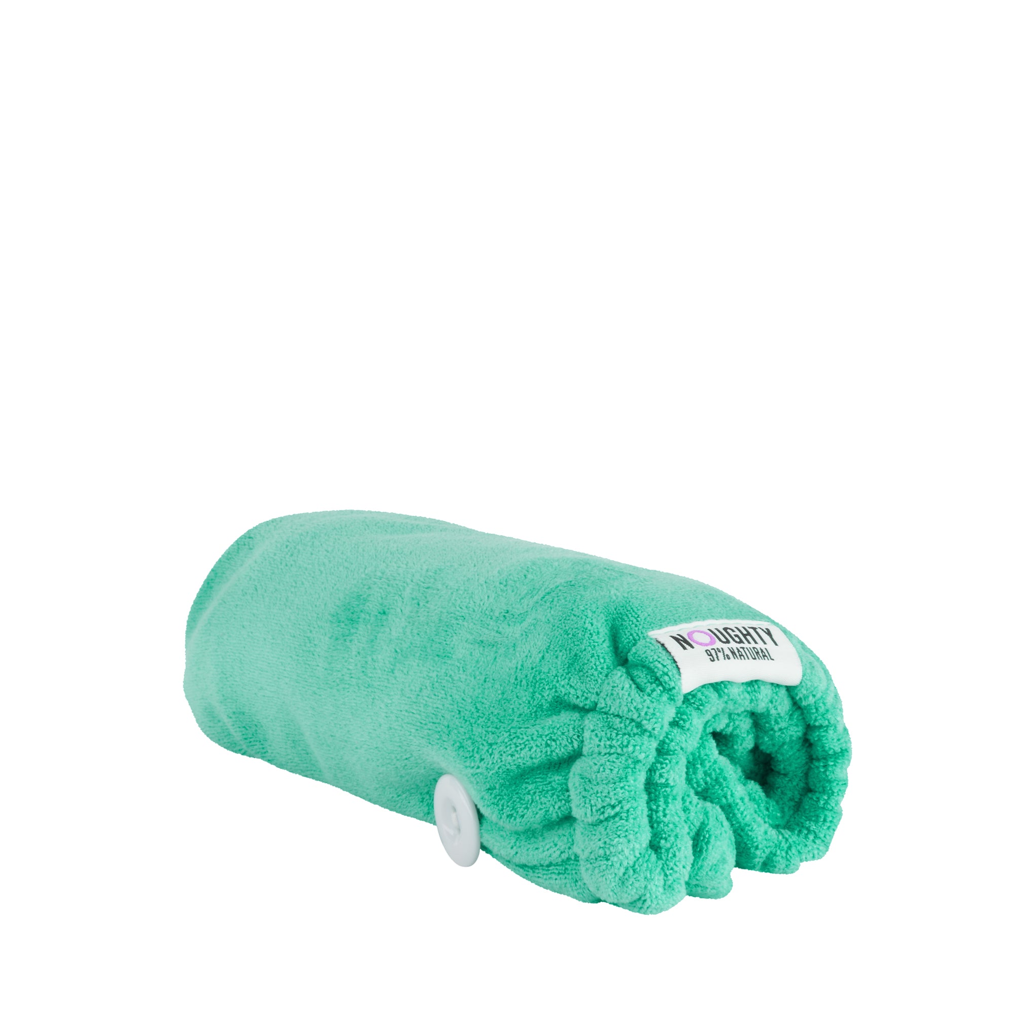 The Green Microfiber Towel by Noughty Haircare is a hair towel made of ultra-soft microfiber that absorbs moisture quickly, reduces frizz and static electricity, and helps dry hair faster without breaking it.