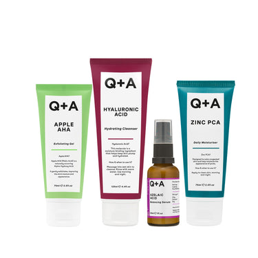 The Q+A Skin Savior Bundle combines cleansing, exfoliation, serum and hydration for balance, radiance and smooth texture.